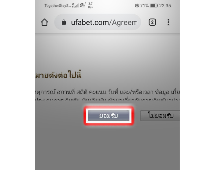 2. เมื่อใส่ระหัสผ่านถูกต้อง ระบบจะขึ้นหน้าด้านล่างดังกล่าว กดปุ่ม หรือ ขยายเพื่อให้เห็นปุ่มกด เพื่อกดปุ่ม ยอมรับ