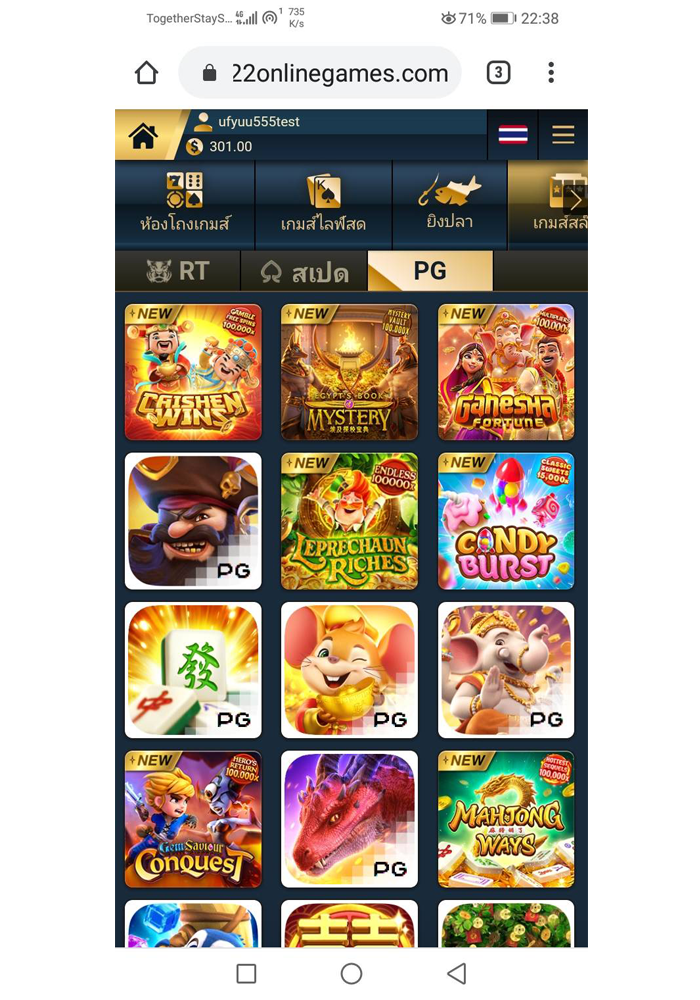 3.เมื่อเข้ามาหน้าเกมส์ UFABET ให้ท่านเลื่อนลงหา เกมส์ สลอต PG